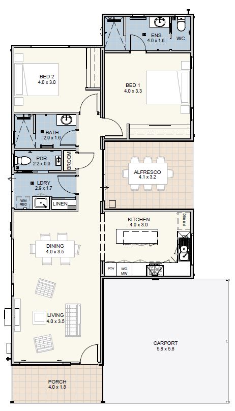 The Karri is a well appointed 2 bedroom, 2 bathroom home designed for easy, low maintenance living with all the comforts you need.