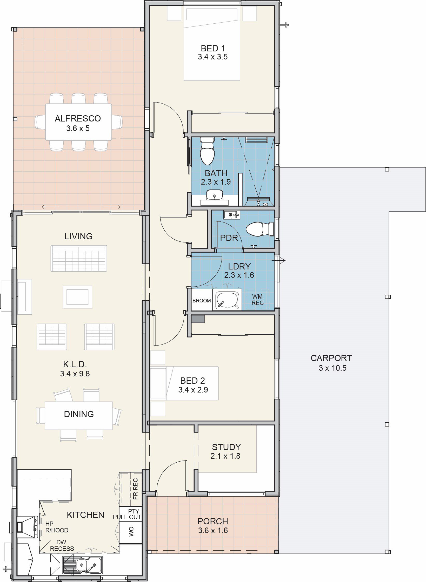 Designed for relaxed over 50s living, The Paperbark is a well designed 2 bedroom, 1.5 bathroom home featuring a central bathroom, powder room and a dedicated – perfect for hobbies, working from home or quiet reading.