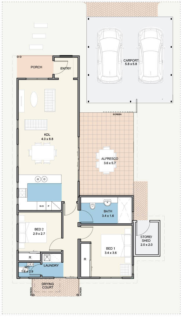 The well-designed U-shaped kitchen looks out across the dining and living areas while also providing easy access to the spacious alfresco. The bedrooms are tucked away from the living areas, offering a quiet retreat from the rest of the home.
