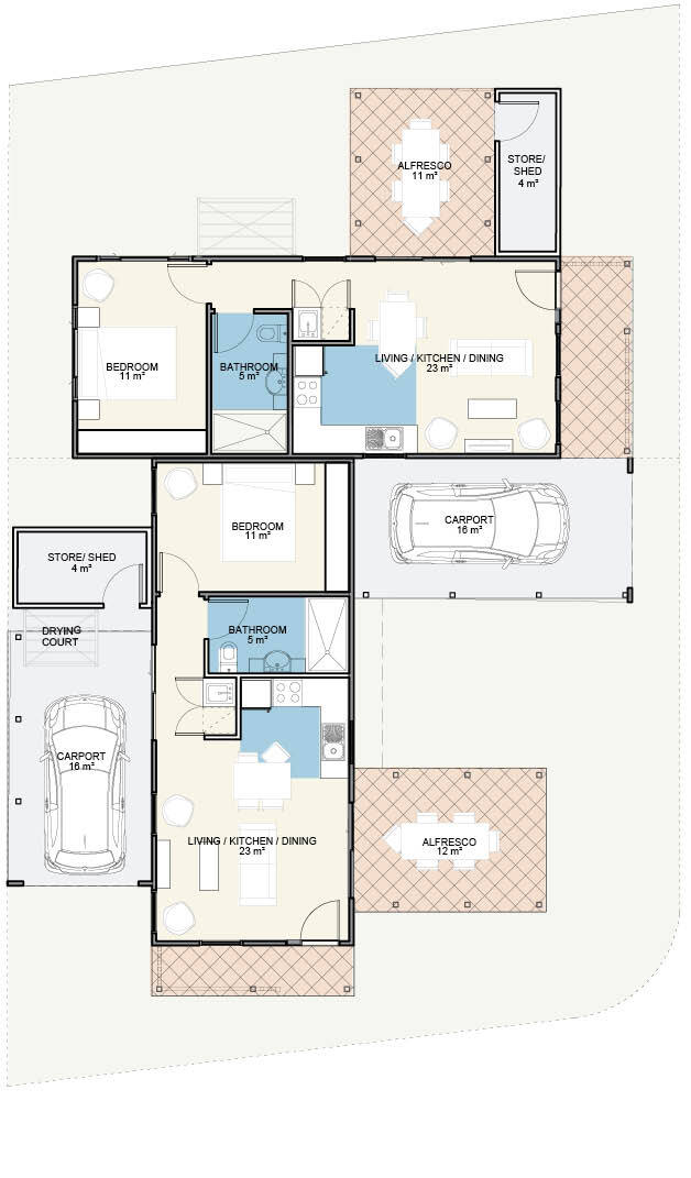 In addition to this, both homes allow for their own entertaining with the living, dining and kitchen sprawling onto the alfresco. Full insulation throughout both homes, and all bedrooms are carpeted with built in robes.