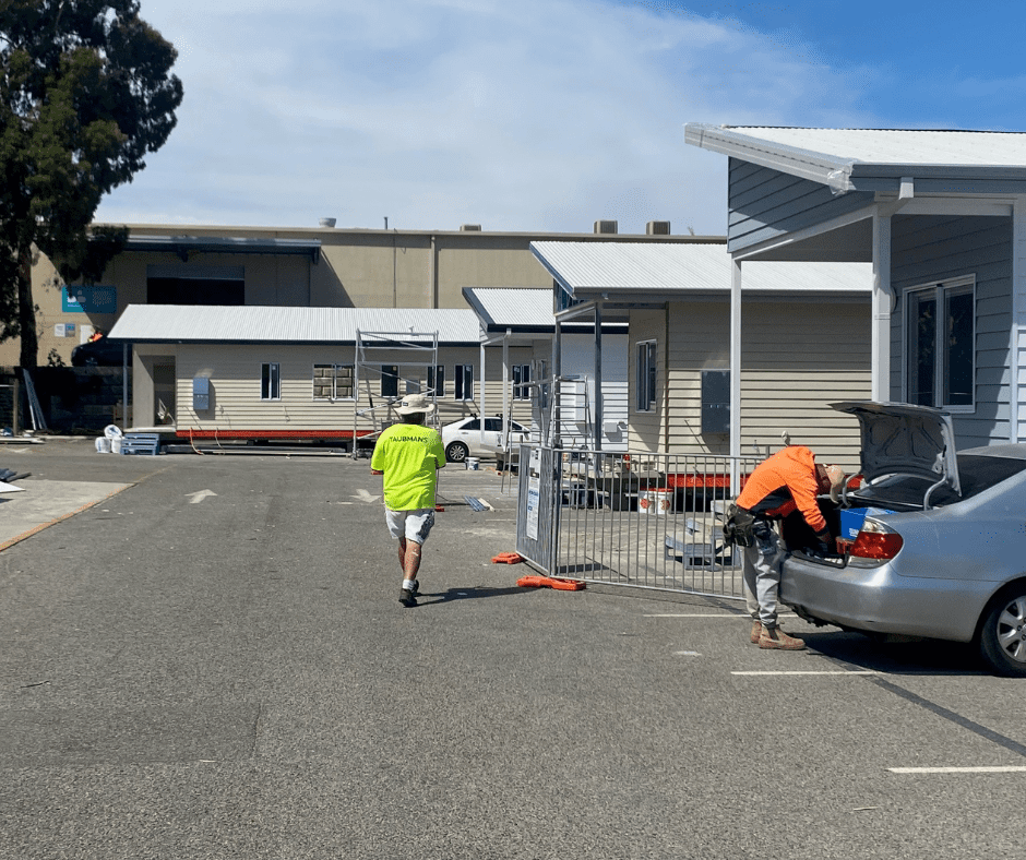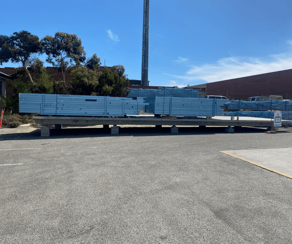 Beyond those 5 homes, the slabs and wall/roof trusses for the next builds were lined up and ready to go – slab with trusses neatly stacked on top.